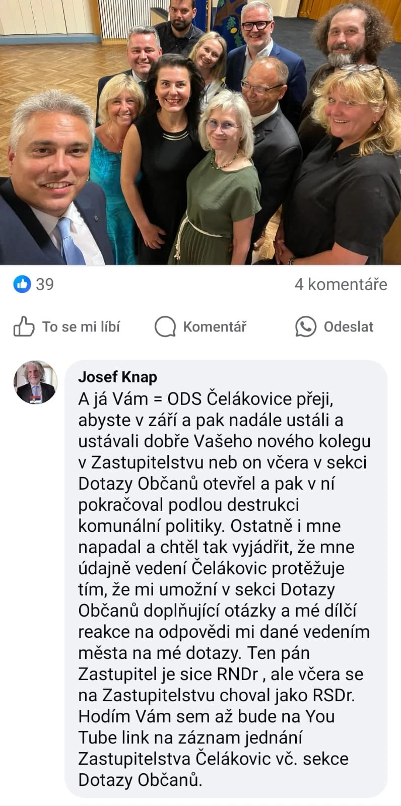 SPOLEČNĚ PRO ČELÁKOVICE hlásí změnu na zastupitelském postu!